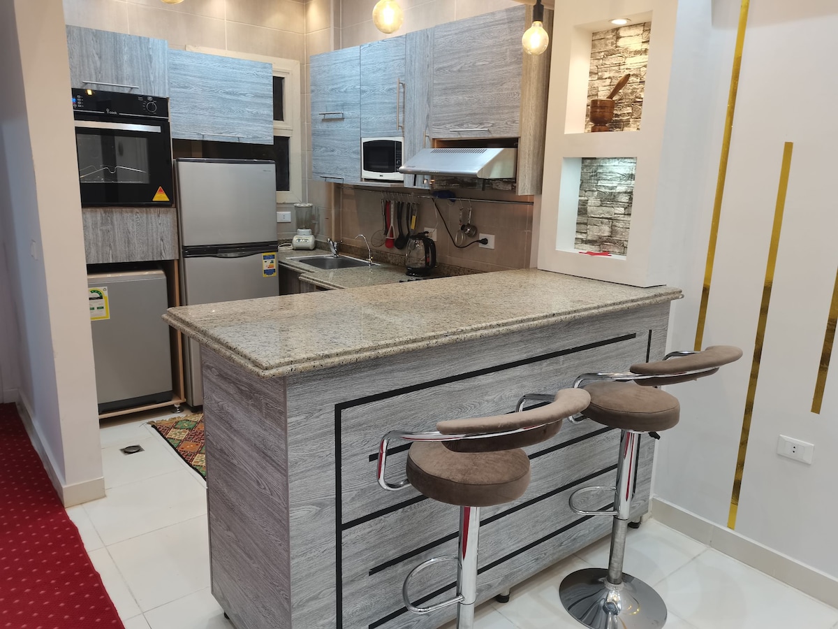 This unique stay has a special style and is located in one of the best areas of Madinaty—just steps away from Open Air Mall (one of Egypt’s top malls), the banks district, and restaurants. If you like it, check our profile! We offer top-tier serviced apartments in Madinaty and 6th of October, and soon in Maadi and New Cairo. Every unit is hotel-quality with full privacy, perfect cleanliness, and a relaxing experience.”