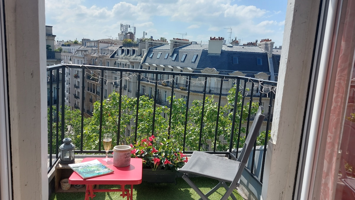 Naš studio v velikosti 15 m2 vas pričakuje v čudoviti stavbi v Haussmannovem slogu v 17. okrožju. Všeč vam bo zaradi udobja, svetlobe in majhnega balkona s čudovitim razgledom. Garsonjera je v 7. nadstropju. Ni dvigala. Prosimo vas, da načrtujete ustrezno velikost kovčkov. Prevoz, trgovine, parki v bližini. Arc de Triomphe, Champs Elysées 15–20 min hoje/prevoza z metrojem. Opremljena kuhinja, dnevna soba z raztegljivim kavčem (hitra postelja), kopalnica in stranišče (umivalnik, prha in stranišče).