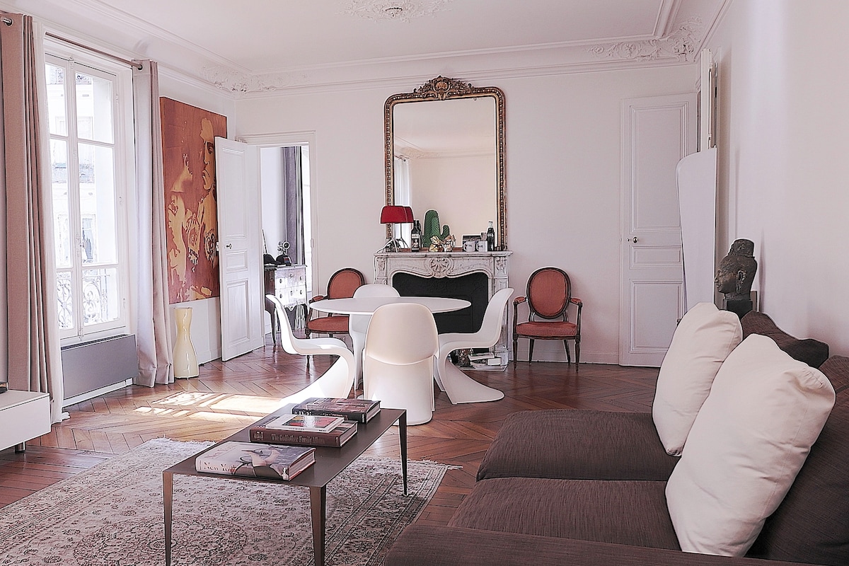 Dobrodošli v mojem stanovanju v čudoviti stavbi Haussmann, ki je skrbno zasnovana z arhitektom in notranjim oblikovalcem. Idealno za par in 1 ali 2 otroka. Stanovanje se nahaja v 3. nadstropju na ulici za pešce z vsemi trgovinami, o katerih lahko sanja gurman. Dve liniji podzemne železnice, ki sta oddaljeni 2 minuti, tretja pa 10 minut, omogočata dostop do Pariza in še več. Zagotovo eno od najboljših prenočišč v Parizu - zelo prijetna soseska, dobro povezana, vendar ne neposredno v prenatrpanih turističnih območjih
