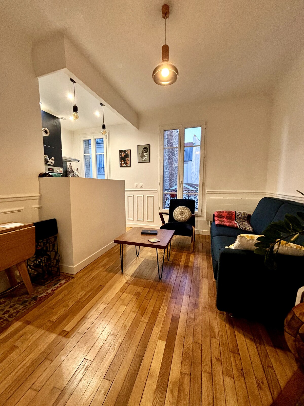 This newly renovated apartment brings back its 1960s-70s vintage charm while ensuring the modern comforts of today. Lots of space to unpack. Lots of light to make you forget the grey Parisian skies . Nestled in one of the best-kept secret neighbourhoods of the city, it sits on a major metro line (line 3). 1 min away is a bustling local café, and around the area many independent coffee shops, grocery stores, biweekly food market, and parks. (Building rules do not permit pets, even service ones).