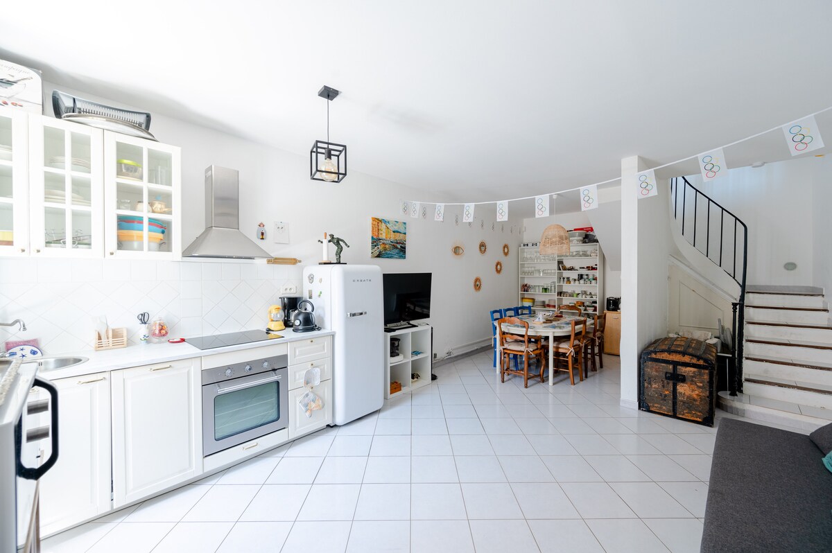 Ce logement est une charmante maison de ville de 90m2 idéalement située au début du panier , très proche du vieux port , du Mucem , de la Major et de toutes les attractions touristiques. Chaque chambre dispose de sa propre télévision connectée , ainsi que d’une salle de bain privative. Vous aurez également vue sur Notre Dame de la Garde au premier et deuxième étage.
