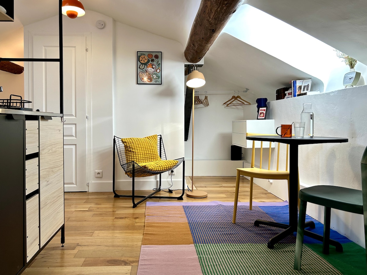 Joli T1 de 30m2 + 15m2 de mezzanine. Le charme de l’ancien refait à neuf, en plein coeur du quartier du Camas, une ambiance à la fois animée et familiale. Très central et tout ce qu’il faut à côté: restaurants, bars, magasins, laverie, boulangerie. Tram à 20 mètres et accès direct au quartier de Noailles au dessus du Vieux Port et à la gare de la Blancarde. Coin nuit avec lit double sur la mezzanine. Cuisine séparée équipée, four, micro-ondes, bouilloire, machine à café