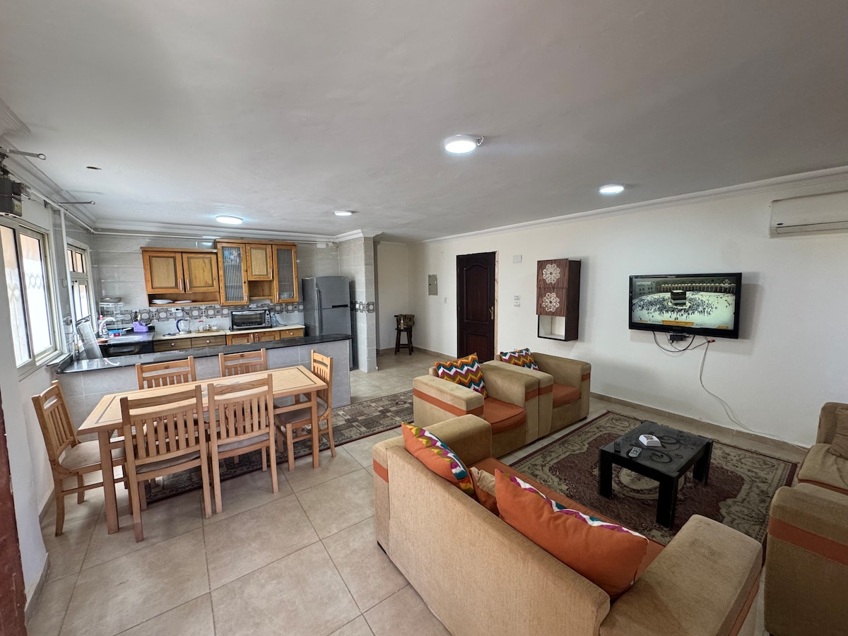 Elegant, fully furnished apartment with a private entrance. Welcome to your elegant, comfortable, safe, and tranquil haven. This apartment offers the perfect balance of location, security, and comfort. Ideal for guests, whether you're visiting for business or leisure, our residence is designed to make you feel right at home. All services are readily available. Overlooking the promenade. Square One. Street, 6th of October City We wish you a wonderful and comfortable stay!