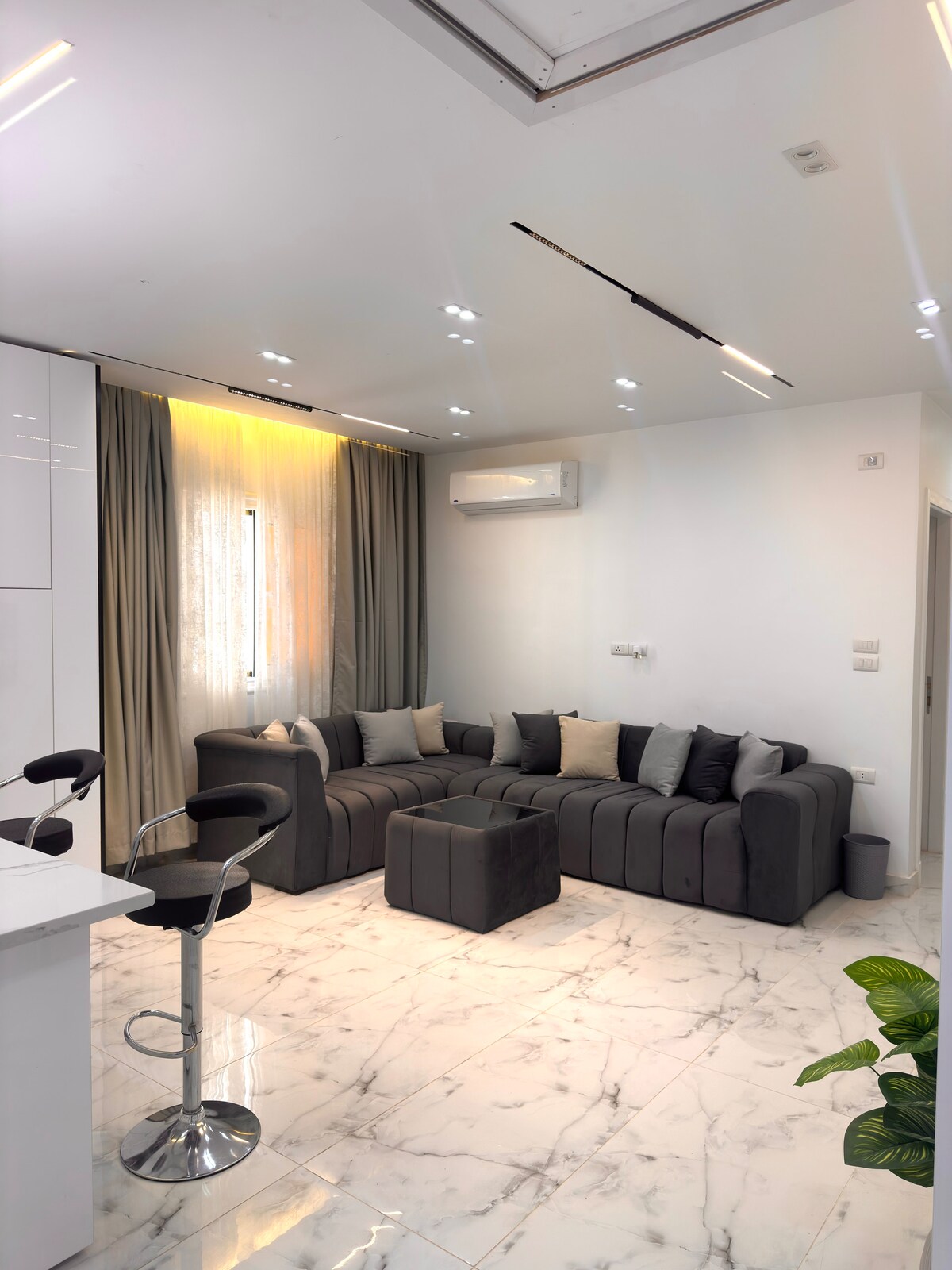 WS Luxury Apartment is located in an elegant villa district in the heart of West Somid. The apartment features a private garden, electric shutters, 5 Smart TVs, modern brand-new equipment, concealed air conditioning, and super-fast 5G internet. With stylish modern finishes and exceptional cleanliness, this space is perfectly prepared to welcome you for a comfortable and luxurious stay just about 15 mins from Mall of Arabia and Arkan in Zayed.