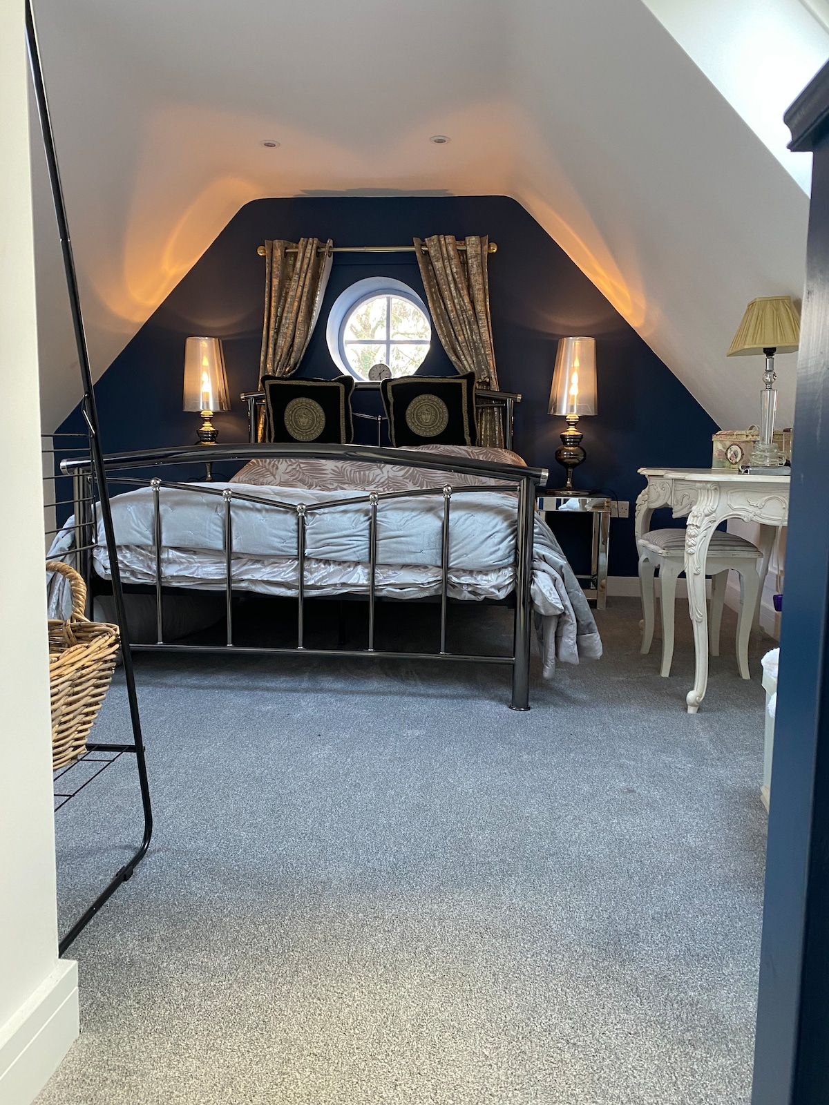 Our self-contained, ground-floor studio apartment for two guests, is one of just two units on site. It is a retreat, a practical workspace, or a convenient base for exploring. The kitchenette has a fridge, microwave, hot plate, toaster, and mini-oven, for cooking meals in . Fully equipped shower room, electric shower. The main area, has a king-size bed, sofas, a table and chairs, a log burner. It benefits from its own private entrance via a shared corridor with the upstairs apartment.