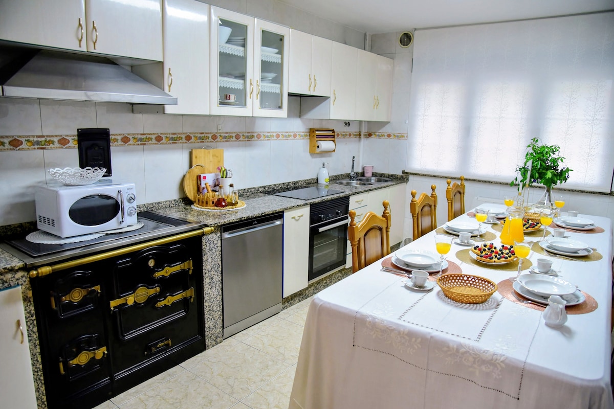 BIENVENIDOS! a Casa Santamaria (12 pax) ¿Te imaginas? 🍀Despertar cada mañana en un ENTORNO TRANQUILO, sin el ruido de la ciudad 🍀Pasar el día disfrutando de la PLAYA 🏖️ o explorando LUGARES ÚNICOS de la zona 📸. 🍀Cocinar en nuestra COCINA TOTALMENTE EQUIPADA 🎛️ y luego relajarte en el jardín, en unos cómodos sofás 🍀Disfrutar del Jacuzzi de agua caliente ♨️ a la luz de la luna🌜 🍀 TELETRABAJAR con Wifi Alta Velocidad con vistas a la montaña. ¡Reserva y vive la experiencia de desconectar!