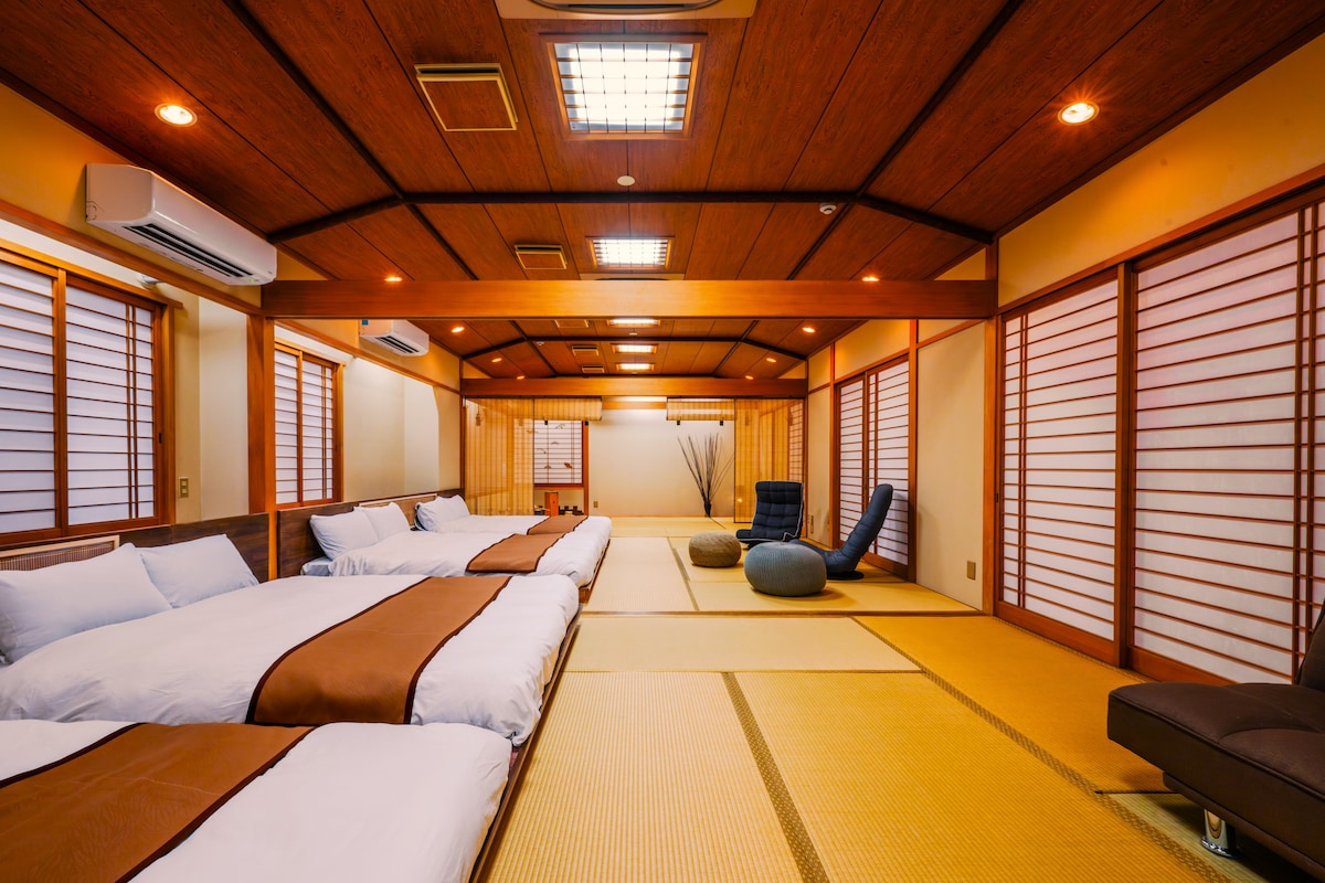 A special space where tranquility meets extraordinary moments. Experience authentic Japanese hospitality you'll want to return to. Elegant Living - Premium sound system with abundant Nintendo Switch games. Enjoy music and movies in quality audio. Spacious Dining - Open dining with corner sofa and L-shaped kitchen. Perfect for cooking together. Japanese Garden - Beautiful courtyard offers peaceful moments away from city noise. Premium Bath - ReFa shower head and spacious bath for relaxation.