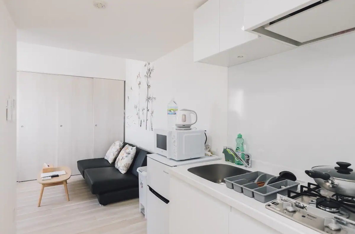 This is a 1LDK, 41㎡ apartment-style vacation rental designed entirely from scratch by an interior coordinator. There are multiple units within the same building. It’s a 7-minute walk to Nankai & Osaka Metro Tengachaya Station. From there, it’s just 2 stops (5 minutes) by Nankai Line to Namba Station, and a direct 35-minute ride to Kansai International Airport with no transfers. ◆Features: Stress-free self-check-in system Japanese, English, and Chinese language support High-speed Wi-Fi available
