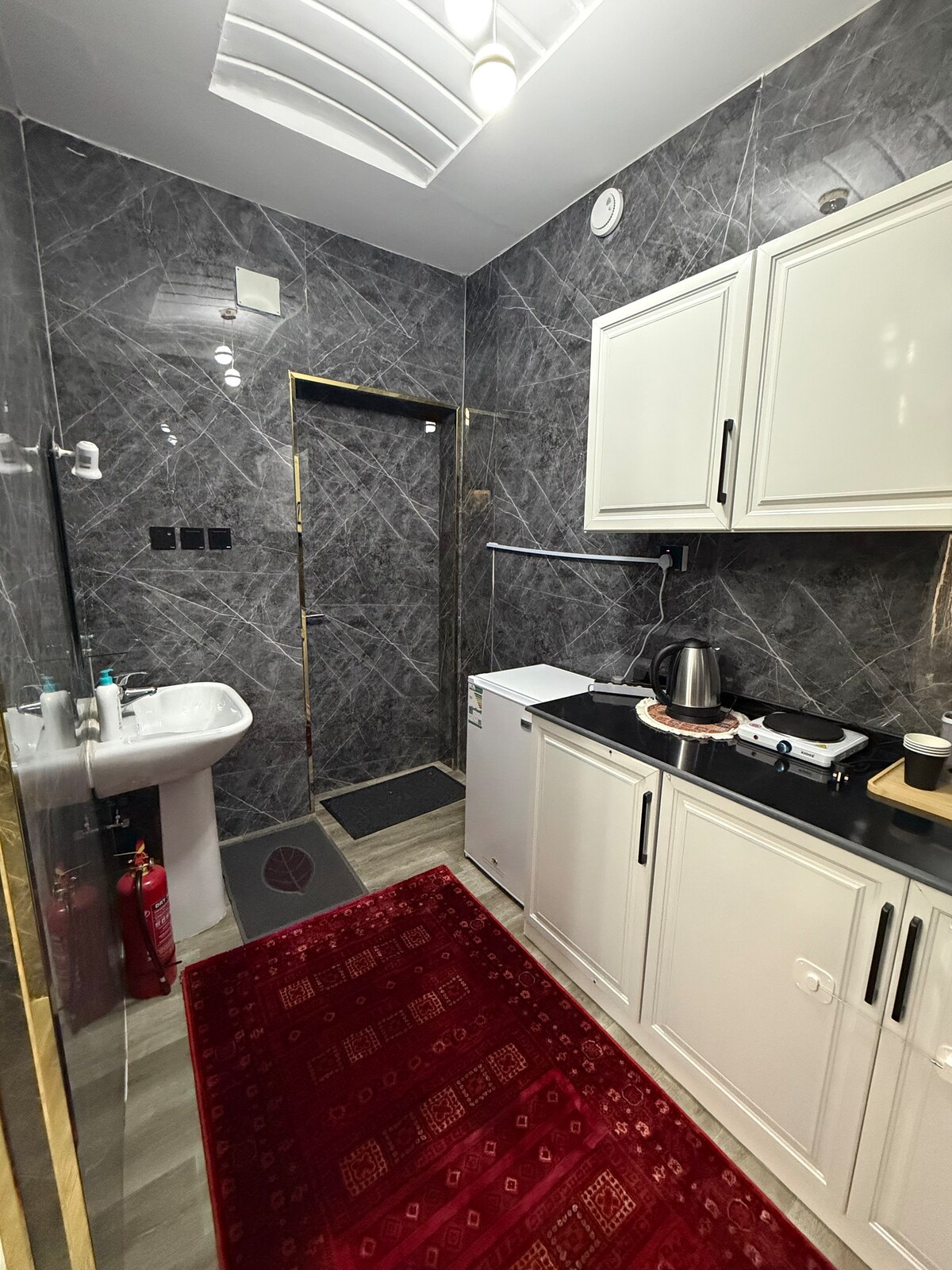 Elegantno in mirno stanovanje, opremljeno s hitrim internetnim omrežjem, sestavljeno iz prostornega salona in spalnice ter kotička za kavo s polnim dostopom in zasebnostjo. Ima zasebni vhod v bližini vseh storitev. 15 minut od letališča, 5 minut od nakupovalnega središča Asir Mall, 3 minute od porodnišnice in 8 minut od igrišča