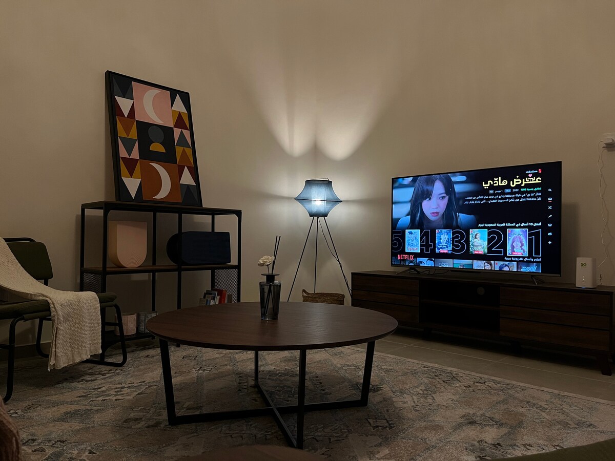 View 202 | Elegant & Cozy 1BR Retreat Experience true comfort in this beautifully designed 1-bedroom apartment in a peaceful Abha neighborhood. Featuring self check-in, stylish decor, soft ambient lighting, and a prime location close to amenities. Perfect for those seeking a serene escape with modern comforts.