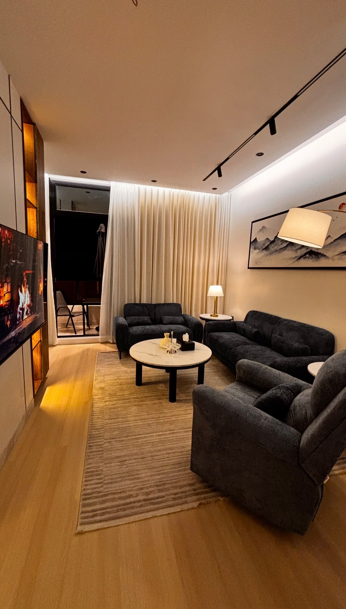 استمتع مع كامل العائلة في هذا المسكن الأنيق. الشقة باسلوب مودرن تتكون من غرفة نوم مجهزة بالكامل ، وصالة مجهزة بشاشة ٦٥ بوصة وركن قهوة بادواته . كنب للاسترخاء ، اريكة سرير . بوفية خدمة متوفر بجميع الخدمات . ادوات قهوة V60 . دخول ذكي وذاتي . غسول وشامبو وسليبرات ادوات نظافة . تتميز الشقة بالاسلوب الجميل والتصميم الهادئ والموقع المتميز بالقرب من المطار يبعد ٧ دقائق .