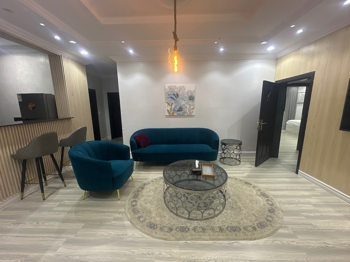 Razkošno, mirno in prostorno stanovanje v novi stanovanjski stavbi, dvigalo je na voljo za enostaven dostop do bivališča, samostojnost in visoko zasebnost, za dostavo in dnevno čiščenje pa je na voljo tudi serviser za goste (V prostoru je na voljo hitra povezava Wi-Fi) ( supermarket , pralnica ) in zasebno parkirišče za 2 avtomobila Imamo tudi 65-palčni zaslon za zabavo Z naročnino na Netflix 📺 Watch TV 📽️ v bližini Obhura 🌊 10 minut ✈️ 15 minut v bližini letališča Jeddah V bližini stadiona Al Jawharah 🏟️ 4 minute V bližini Super Dome Jeddah Dome 🎉 6 min