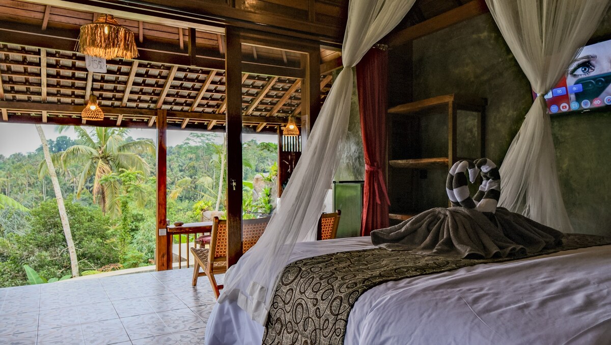 Privoščite si svoje najboljše potovanje z Balijem ta edinstven in miren oddih bi ustvaril nepozabno izkušnjo. to edinstveno hišo smo zasnovali za ljubitelje narave, počutili se boste, kot da bivate v naravi, najbolj neverjetno, da lahko posteljo povlečete na balkon, kjer lahko uživate v najlepšem sončnem zahodu in džungli. poleg postelje imate tudi neverjetno veliko kad s črvi (cvetlična kopel se doplača) imate tudi gugalnico in visečo mrežo. imate tudi zasebni naravni bazen.