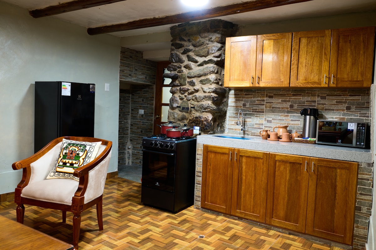 Este lugar tiene una ubicación estratégica: ¡será muy fácil planear tu visita! Nos encontramos a sólo una cuadra de la plaza del Ollantaytambo, desde aquí disfrutarás de las calles inkas y de los restaurantes y tiendas del pueblo. Podrás ver también las antiguas construcciones Incas. Contamos con dos habitaciones completamente amobladas, con baño privado cada una, y cocinas completas cada una, ideal para grupos de amigos y familias.