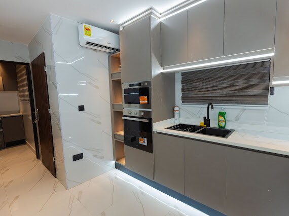 Stylish 2-BR Retreat | Families & Friends Relax in our 2-BR getaway within one secure PamV Estates property. You’ll have 2 Bedrooms, 2 Bathrooms, 1 Guest Washroom, a Kitchen, and a spacious Living/Hall perfect for families, friends, or colleagues seeking comfort and privacy. Just 5 minutes to Melcom supermarket and cafés, and about 33 minutes to the airport. High-speed Wi-Fi included.