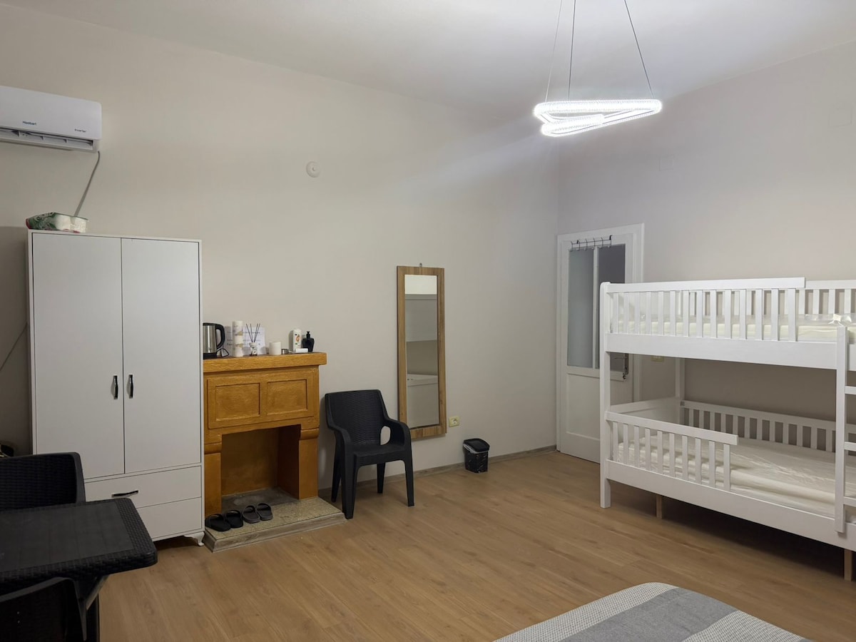Shared dorm room, can be turned into a private room as well. Spacious bright room inside a friendly quiet hostel. Can host up to 4 people for friends or family The main bed is versatile, can be 2 single beds or 1 double queen bebd, the other 2 beds are in a bunk bed. The bathroom will be shared but is very close to the room. We also have plenty of common areas as patio with comfy couches, seating area, communal kitchen at your use.