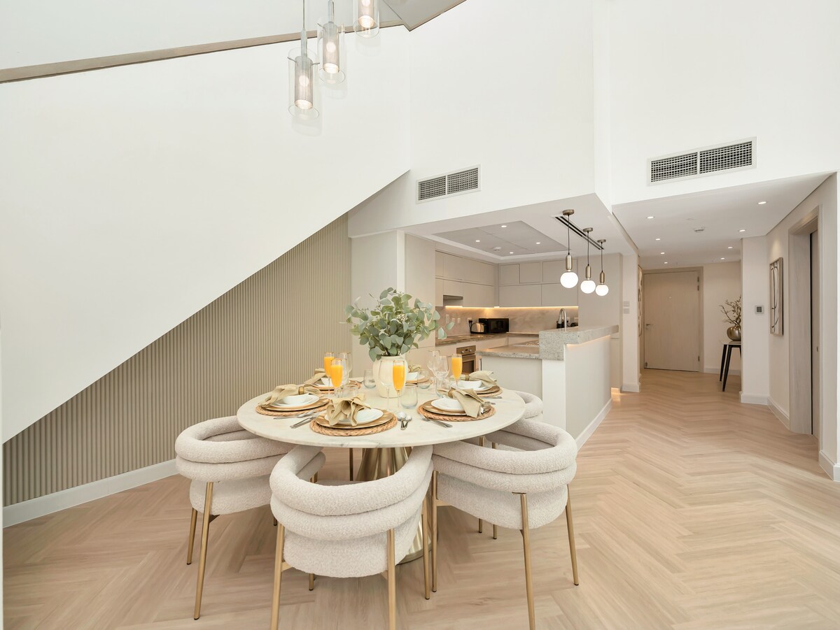 Live in the heart of Downtown and enjoy breathtaking views of the Dubai Skyline as you live in luxury at this spectacular 3BR Loft Style Duplex! Dubai Mall & Burj Khalifa are minutes away and you're on the Boulevard- so location is everything! Indulge in the luxury with premium amenities, pool & top-class gym with panoramic city views of, high-speed WiFi, dedicated parking and more! Ideal for couples, families and discerning travelers who can appreciate the Kensington Homes difference!
