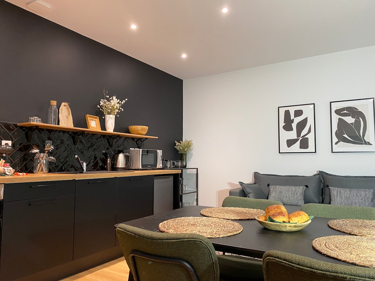 Dobrodošli v svojem kokonu agenais! Ta studio, ki se nahaja v drugem nadstropju, je popolnoma preoblikovan in skrbno prenovljen ter vam ponuja sodoben, udoben in topel prostor, ki je idealen za oddih ali poslovno potovanje. Našli boste popolnoma opremljeno novo kuhinjo, udoben spalni prostor za počitek v miru in elegantno kopalnico z minimalističnim slogom. Idealna lokacija, da v celoti izkoristite mesto in uživate v miru soseske.