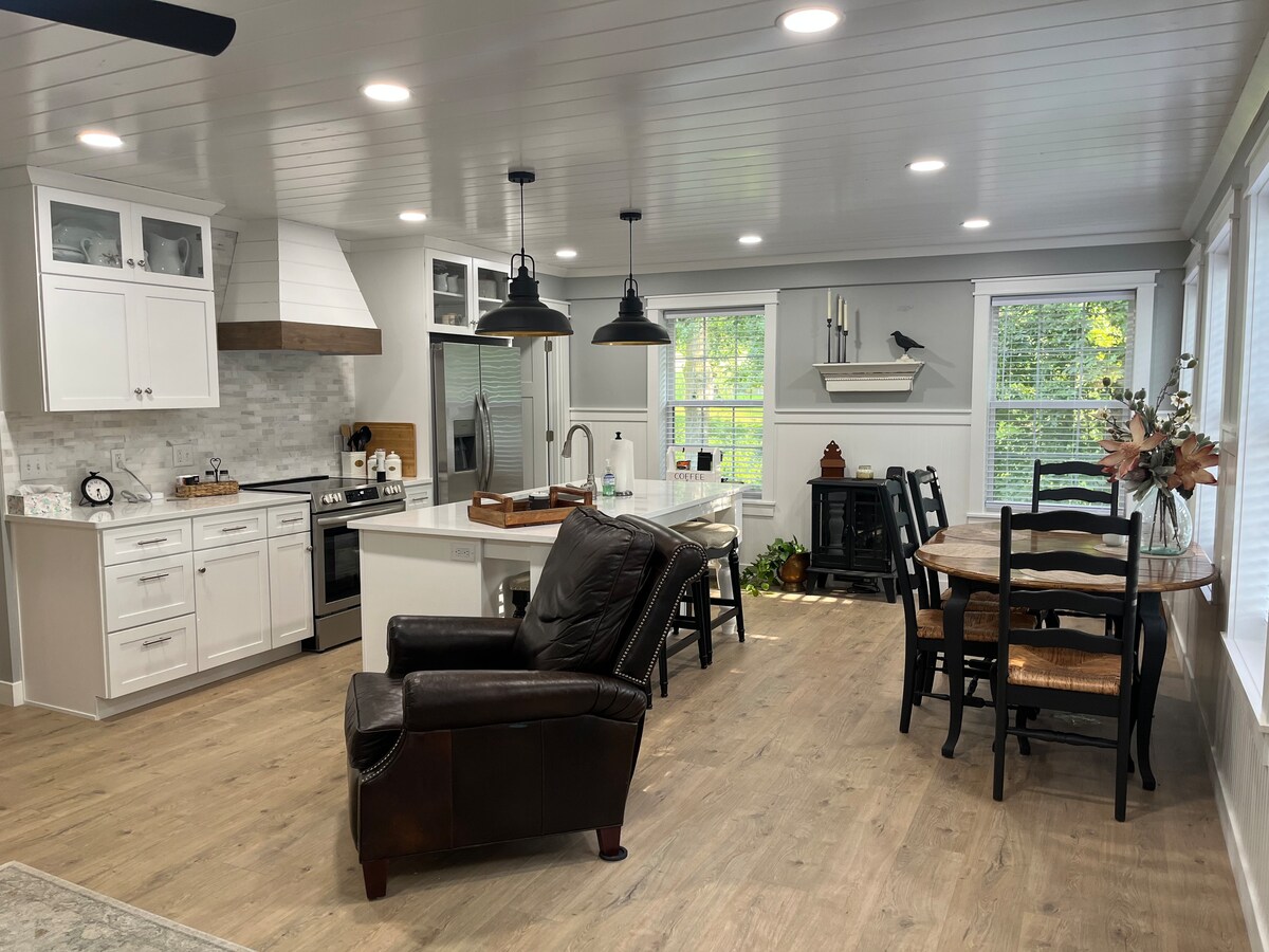 Uživajte v najboljšem razgledu na obalo v mestu z dostopom do viseče mreže, Wi-Fi-ja, viseče gugalnice, gugalnice na verandi, žara, ogromnega dvorišča in ogromne betonske terase, ki gleda na reko. Na bližnjem obalnem drevesu je plešasti orel, ki išče ribe. Če ste dovolj potrpežljivi, ga lahko vidite, kako se spušča in ga zgrabi. Vlak občasno pelje mimo in občasno sliši svojo hupo, zato bodo lahkotni pragovi morda potrebovali aplikacijo z belim hrupom ali ventilator. Prenočišče za nekadilce/čist zrak.