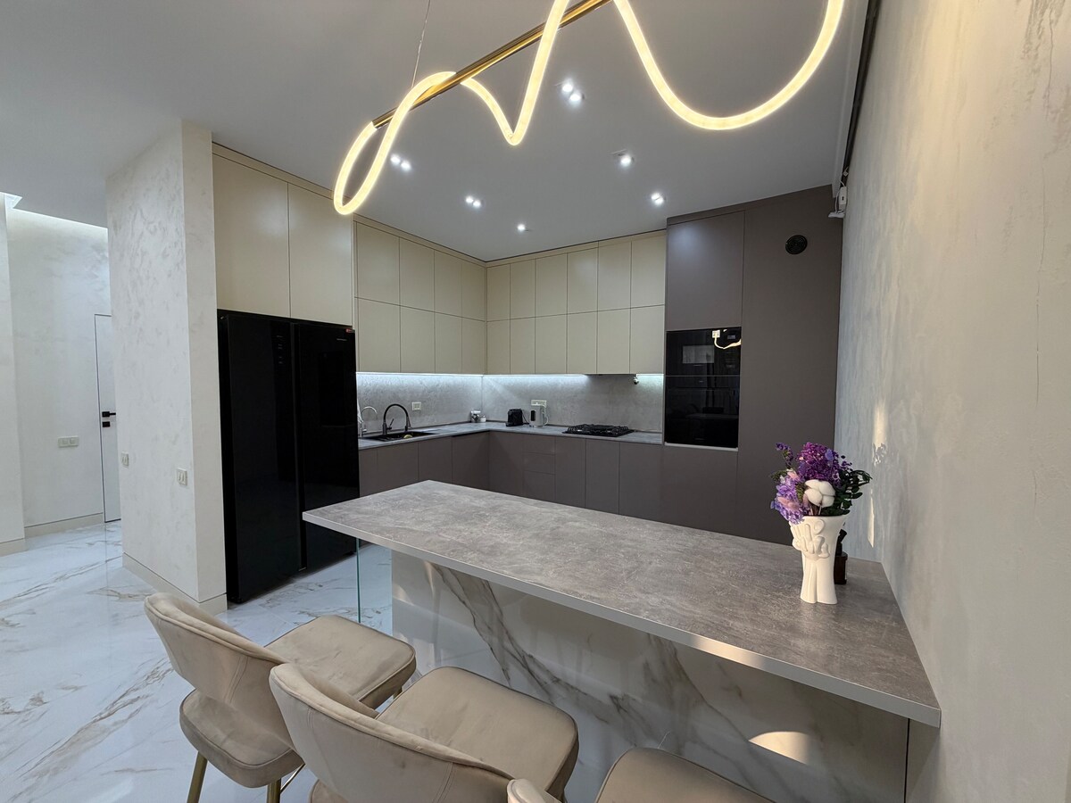 ☆ Ekskluzivna zasnova, nagrajeno, tik ob stopnicah kaskade, 1 min hoje od opere in baletnega gledališča, varno in v najbolj kulturnih kotičkih mesta pri kaskadi. ◦ Non stop samostojni vstop ☆ Ekskluzivno oblikovanje ◦ Prostornih 91 m2 ◦ 5. nadstropje od 5 (stopnice) ◦ Dve lepi spalnici ◦ Legendarna prha ◦ Panoramska okna ◦ Pametna televizija, WI-FI ◦ Popolnoma opremljena +opremljena kuhinja + pomivalni stroj ◦ Velika jedilnica ◦ Postelje 180x200 ◦ pranje in ožemanje ♥ V hotelih ustvarjamo spomine eno bivanje naenkrat!