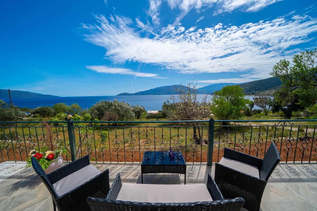 A classy, minimalistic, well-lit seafront apartment designed by an interior designer, beautifully decorated and well-equipped, with all the necessary amenities to provide a comfortable and luxurious living experience. The apartment has large door windows that offer stunning panoramic views of the Ionian Sea, allowing you to enjoy the breathtaking scenery from the comfort of your own home.