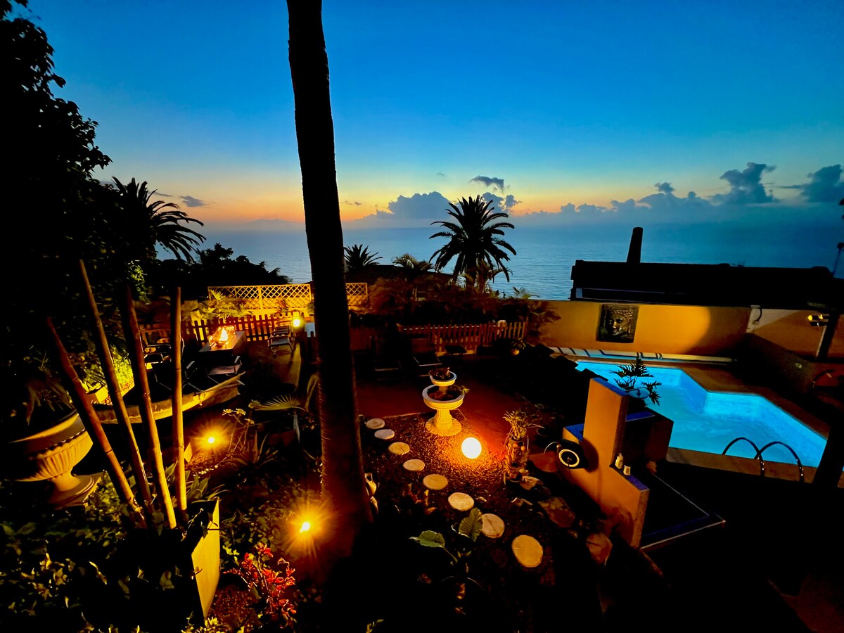 Welcome to our little paradise In the green north of Tenerife, right on the cliffs, 53 meters above sea level, and with an amazing view of the Teide volcano and the Atlantic Ocean-incredible sunsets guaranteed! In the lower part of the beautiful village of El Sauzal you are well connected to explore and have many restaurants and shopping facilities within a radius of less than 15 minutes by car. Not recomended for children under 8 years due to the pool.