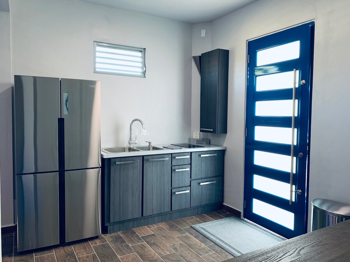 Sodobna razkošna suita v stavbi novih stanovanj. Najboljša lokacija! 1 min od letališča Aguadilla (BQN), 2 min od Crashboata in vseh drugih spektakularnih plaž v Aguadilli. Oddaljenost od trgovine z živili (čez cesto) in restavracij. Zavarovana namestitev, ima vrata za dostop z daljinskim upravljalnikom, zunanjostjo.