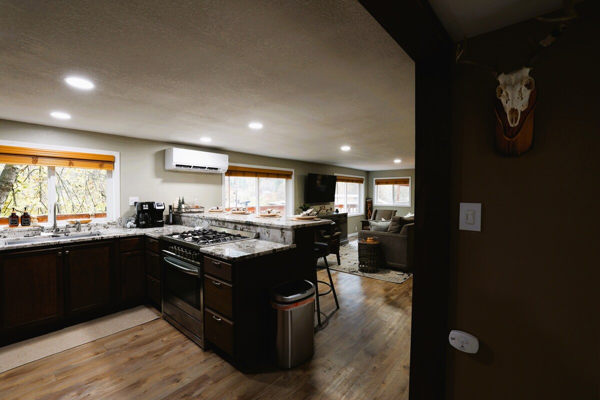 Pobegnite v hišo Winchester Lake House, ki se nahaja sredi gora in osupljive pokrajine, kjer vas pričakujejo prijazni ljudje in svež gorski zrak. Idealna koča za oddih in pustolovščine na prostem z udobno opremo. Sprehodite se do državnega parka Winchester Lake, kjer lahko lovite ribe, veslate, se vozite s kajakom, veslate na deski, hodite po pohodniških poteh ali pa se podate na pustolovščino s štirikolesnikom. Uživajte v sončnih vzhodih in zahodih na terasi, ki obdaja prenočišče. Pecite penice na ognjišču, nato pa se udobno namestite ob kaminu, medtem ko vaši prijatelji in družina uživajo v igranju biljarda in shuffleboarda. Raj za ljubitelje narave!