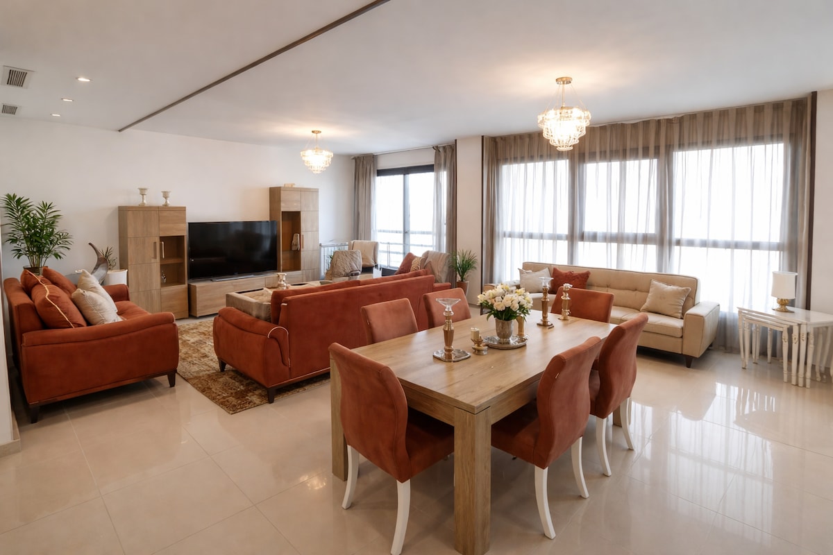 Čudovito razkošno stanovanje, ki se zelo dobro nahaja v osrčju ORANA, ob obali (corniche) z dvema spalnicama in odprto kuhinjo v zelo svetli dnevni sobi z elegantno in urejeno dekoracijo! Osupljiv razgled na mesto Oran. Našli boste vso sodobno opremo, zaradi katere bo vaše bivanje nepozabno. Nahaja se na vodni fronti Orana na varni ulici. Soseska je znana po velikem bulvarju, polnem trgovin, kavarn, restavracij in javnega prevoza.