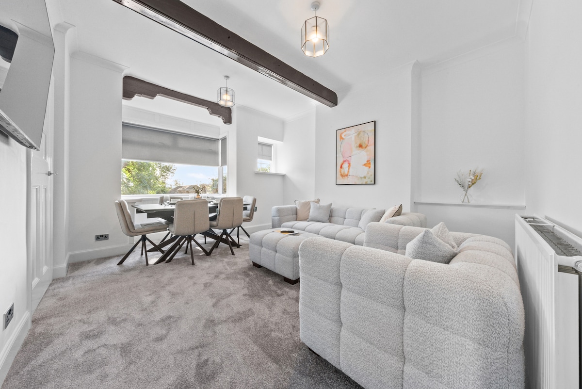 Self check-in with the whole apartment to yourself means you can relax and feel calm & cosy. Newly renovated to a high standard with a luxurious bathroom installed for you to enjoy! A clean & minimalist style kitchen. Soft carpets with electric recliner sofa in the lounge area! Includes access to WiFi & use of an Amazon fire stick so that you can catch up on your favourite movies & shows on Netflix! Free on site parking included with a great view of Hamilton Upper flat *stairs upon entry*