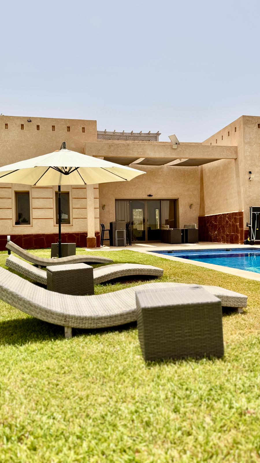 Očarljiva oaza miru, kot nalašč za razburljiv umik družine ali prijateljev! Uživajte v 3 luksuznih spalnicah z lastno kopalnico. Sprostite se ob zasebnem bazenu v 1300 m² velikem vrtu, stran od radovednih oči. Ostanite hladni s polno klimatsko napravo in bodite povezani z zelo hitrim Wi-Fi-jem. Zaščitena na zasebni varovani domeni, ki je na voljo 24 ur na dan, le 10 minut od 3 igrišč za golf in 20 km od letališča in Medine, ki je oddaljena le 25 minut, se veseli vas. Vaše blažene počitnice - nepozabno potovanje vas čaka!