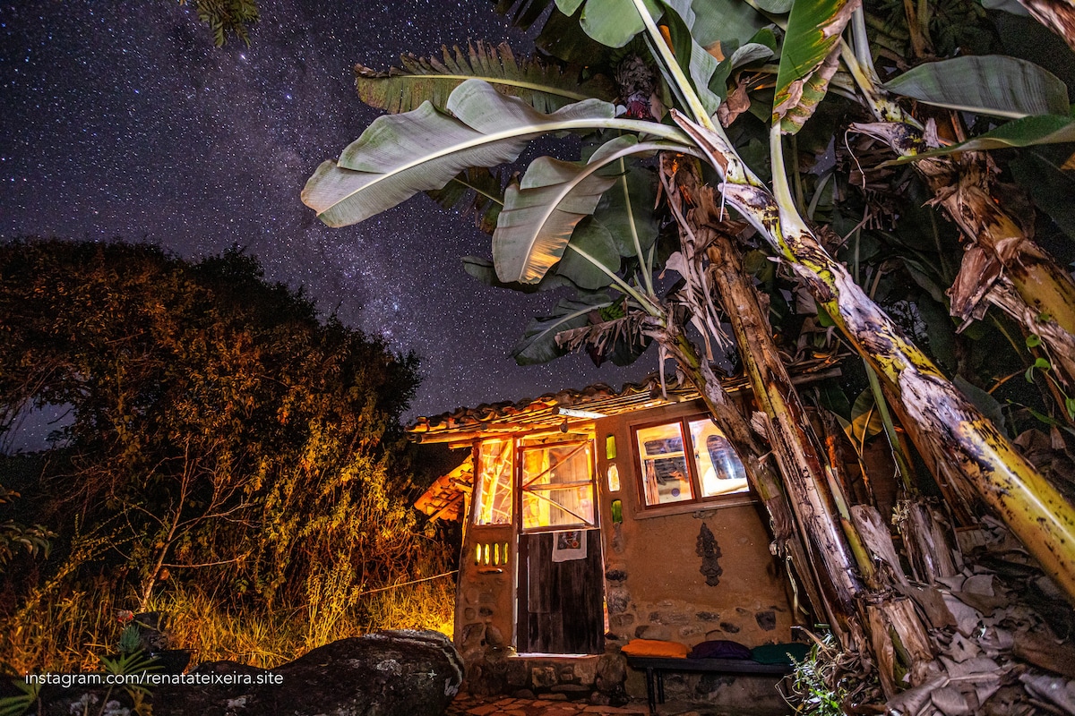 A Cabana Acampo é uma micro casa rústica, feita em bioconstrução (pau a pique), ecológica, sustentável e integrada com a natureza. Oferecemos uma hospedagem única, orgânica e consciente, para todos que, não só gostam da natureza, mas que contemplam e se sentem parte dela! Localizada na área rural de Baependi, no Vale do Gamarra próximo a lindas cachoeiras. À 38 km de Baependi em estrada de terra. Obs.(Não temos energia elétrica)