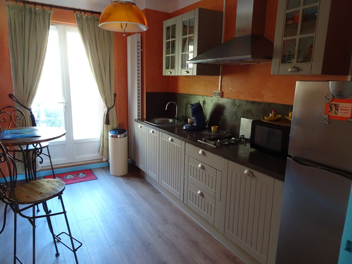 Spacious and luxurious T2 50m2 place free secure private parking 300M, 1/1 floor, bright, south view superb garden pool, spa, 200 m festival Aix, quiet, new, very well equipped, free wifi, tv, bath , Bed 160, dressing, cupboards, cellar, bed bb, bed supplement, 50 m from the shops and bus, opposite the thalassotherapy center, in historical town center in quiet street, we are at your disposal to give you all information to organize your stay