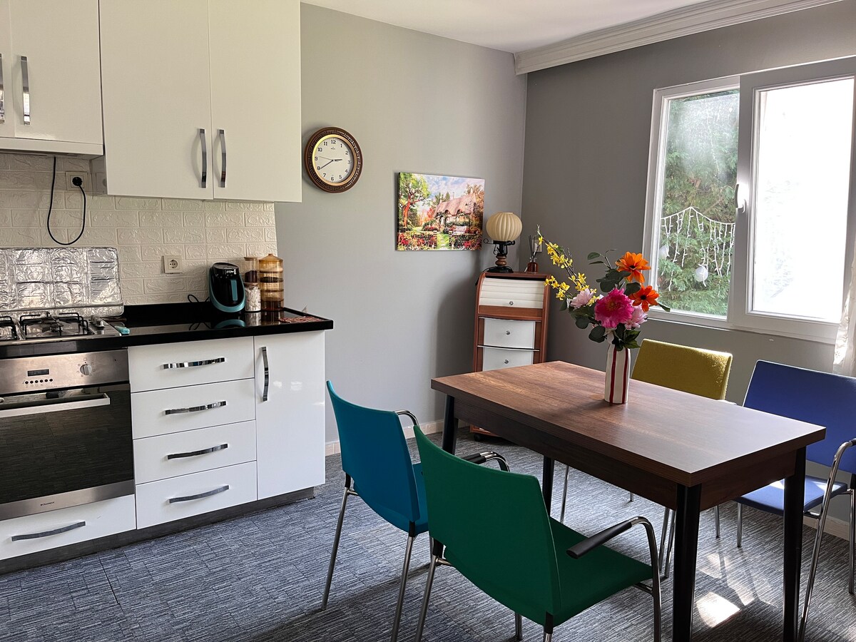 (🎶 a mansion that feels like winter garden) We are on a beautiful island, Heybeliada =) It’s 150 years old island house, Mansion of Hristo Nikolaidis. It has beautiful sunrise lights in the morning and it takes 2-3 min. to the house from centre by walking. It has a beautiful balcony with great seaview. There is natural gas, so warm at winter. I have a cat at home, Luna, so friendly. Kitchen has everything you need for cooking with 2 windows and also seaview. 🐿