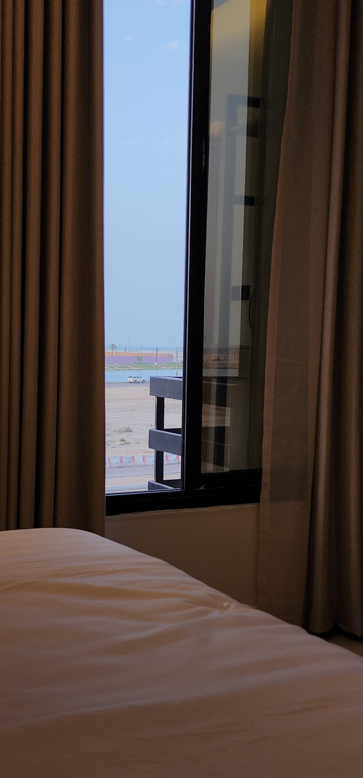Garsonjera s stransko sejo, ki je odprta do spalnice Plus balkon s sejo Kopalnica in kuhinjska niša, ki sta v celoti opremljeni s kuhinjsko posodo, mikrovalovna pečica, električni grelnik vode Samodejni pralni stroj ima internet. 3 minute od morja 3 minute od poti King Fahd Causeway Pomembna opomba: Stranski položaji samo poleg arhitekture Enota nima posebnega parkirišča