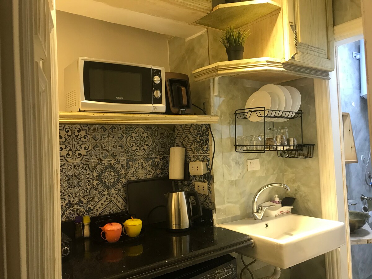 Luxury & Stylish Studio Near City Stars Mall ✨ Enjoy a modern and elegant studio in the heart of Nasr City, only minutes away from City Stars Mall, restaurants, cafes, and everything you need. ✔ Cozy sleeping area 🛏️ ✔ Comfortable living space 🛋️ ✔ Spacious bathroom with bathtub 🚿 ✔ Fully equipped kitchen 🍽️ ✔ High-speed Wi-Fi 📶 Ideal for couples and business travelers looking for comfort, privacy, and a prime location in Cairo ⭐