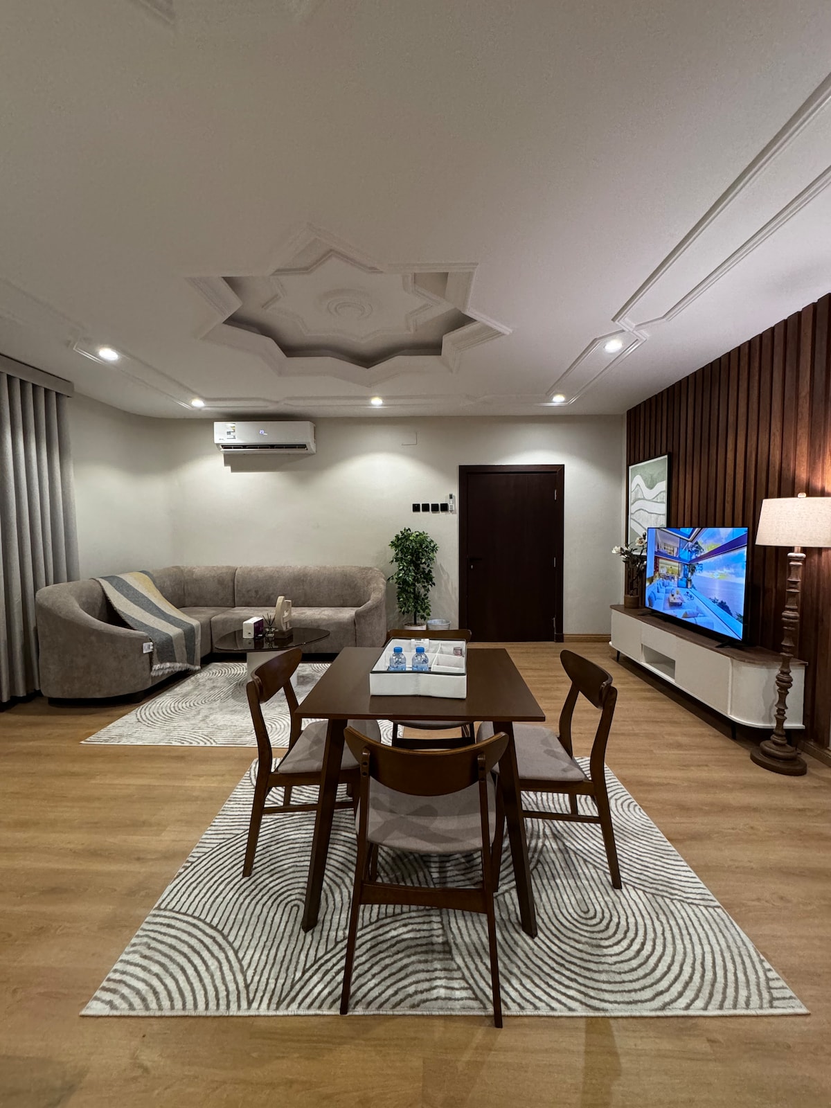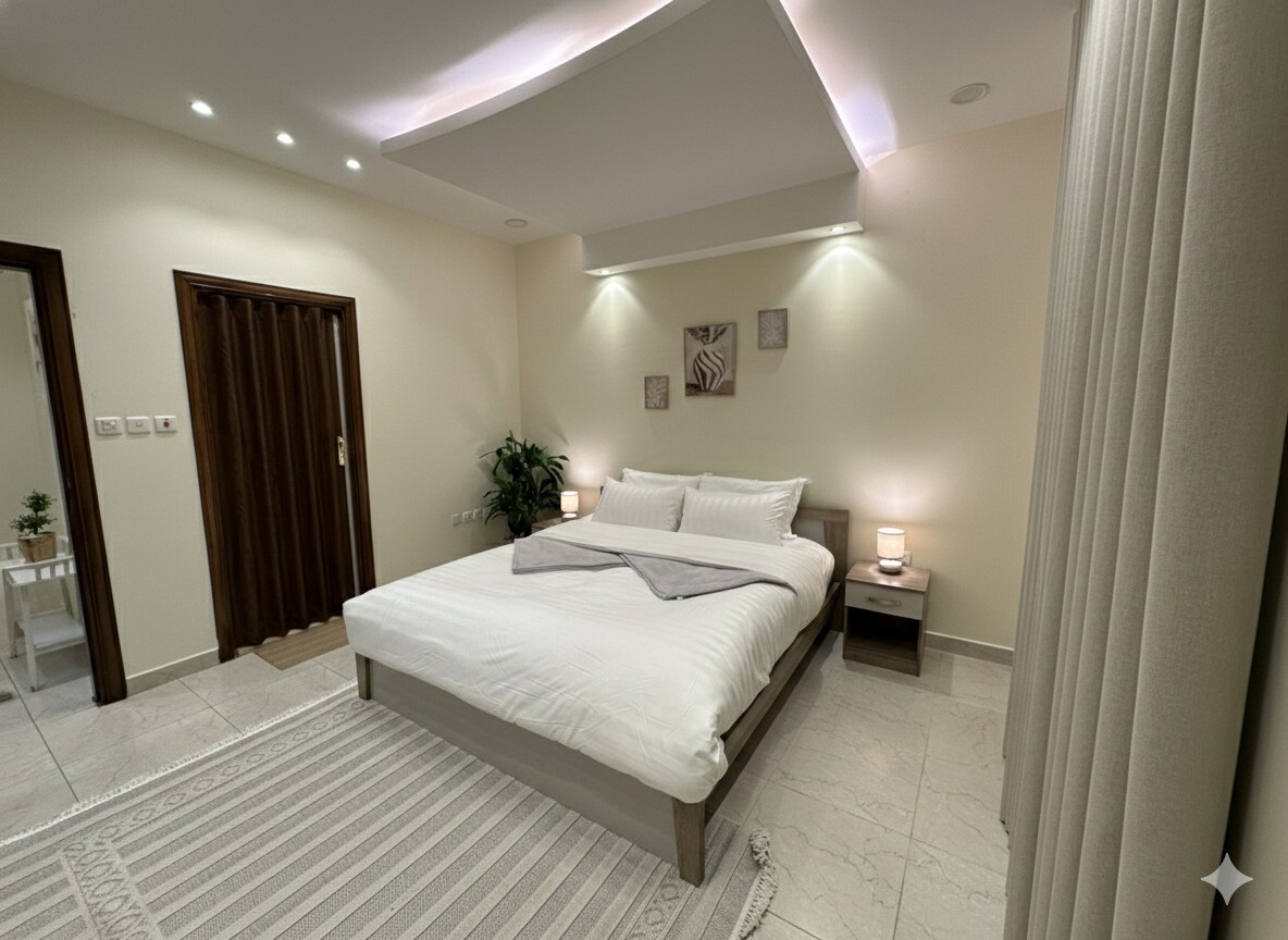 Gre za stanovanje s sobo, salonom, kuhinjo in kopalnico, ki se nahaja v središču središča središča kampusa, v središču restavracije, kavarn in s pogledom na Wadi Al Aqeeq. Od Islamske univerze je oddaljen 3 minute vožnje. Zasnovan je v udobnih barvah in sodobnem oblikovalcu. Na voljo je 57-palčni zaslon Netflix in priča ter ima dovolj prostora, popolno zasebnost in pameten vstop. Želim vam srečno bivanje in Bog vas blagoslovi, dragi gost