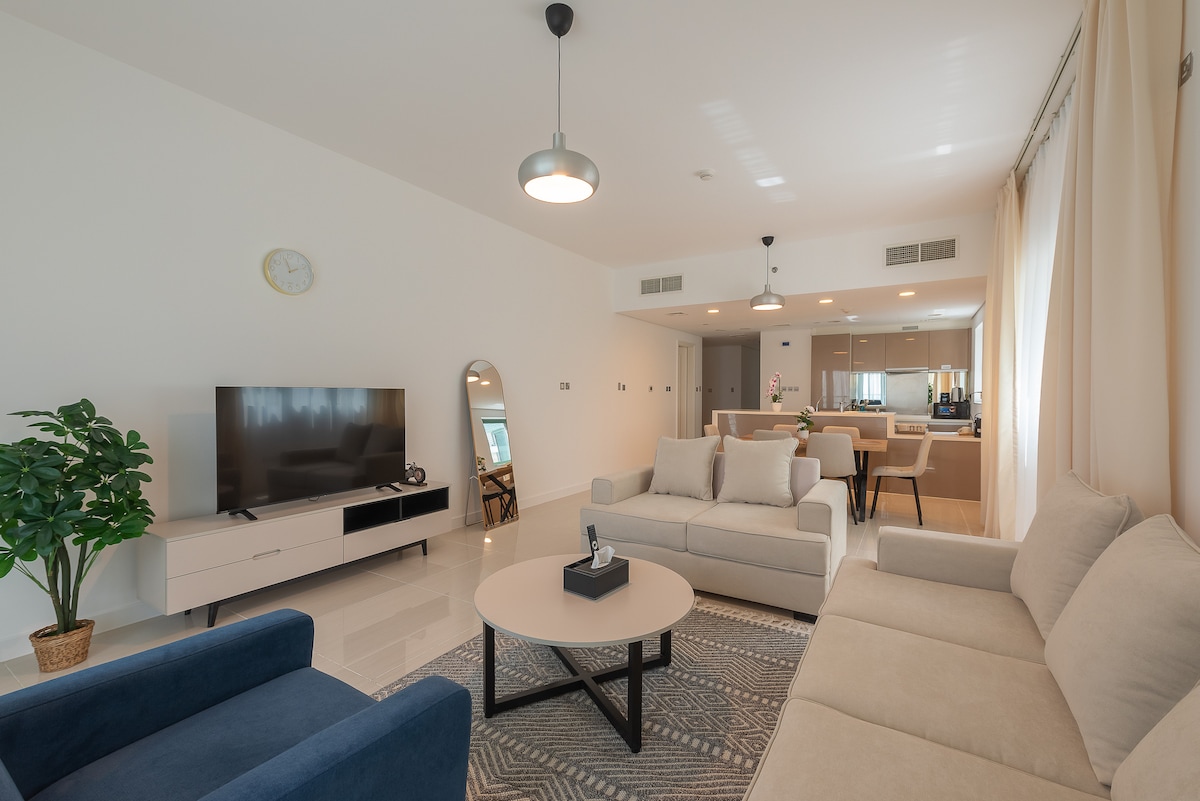 Dobrodošli v svojem elegantnem mestnem oddihu — sodobnem enosobnem stanovanju, ki se nahaja v 4. nadstropju Reem Diamond Residence. To mirno zatočišče, ki meri 76 m2, je premišljeno oblikovano v mehkih bež, toplih sivih barvah in hrustljavih belih barvah s plišastimi teksturami in elegantnimi linijami, ki krepijo njegov prefinjeni šarm. S sončno svetlobo, ki se pretaka skozi velika okna in odprto razporeditvijo, se stanovanje zdi zračno, pomirjujoče in brez napora razkošno — popolno zatočišče za ponovno polnjenje po dolgem dnevu.