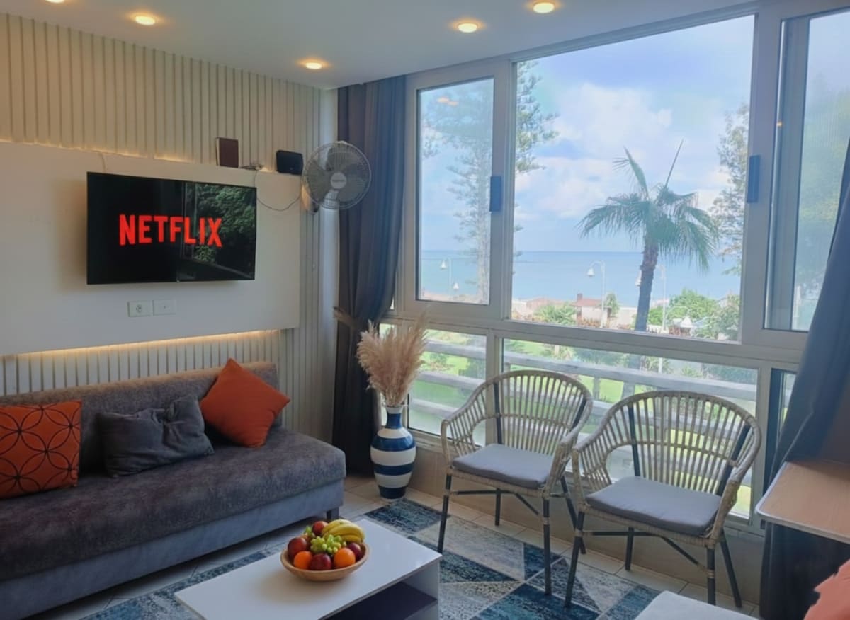 Ugledno stanovanje na plaži v Aleksandriji na območju Montazaha. Sestavljen je iz treh spalnic s 6 postelj, dveh kopalnic, velikega hodnika z jedilnico, salona in dnevne sobe. Poleg pogleda na morje po širini hodnika. In velik balkon s kavčem in stoli iz pletenih in klasičnih kroglic. Stanovanje se nahaja v devetem nadstropju in ponuja edinstven pogled na plažo, ki je še nikoli ne boste videli.