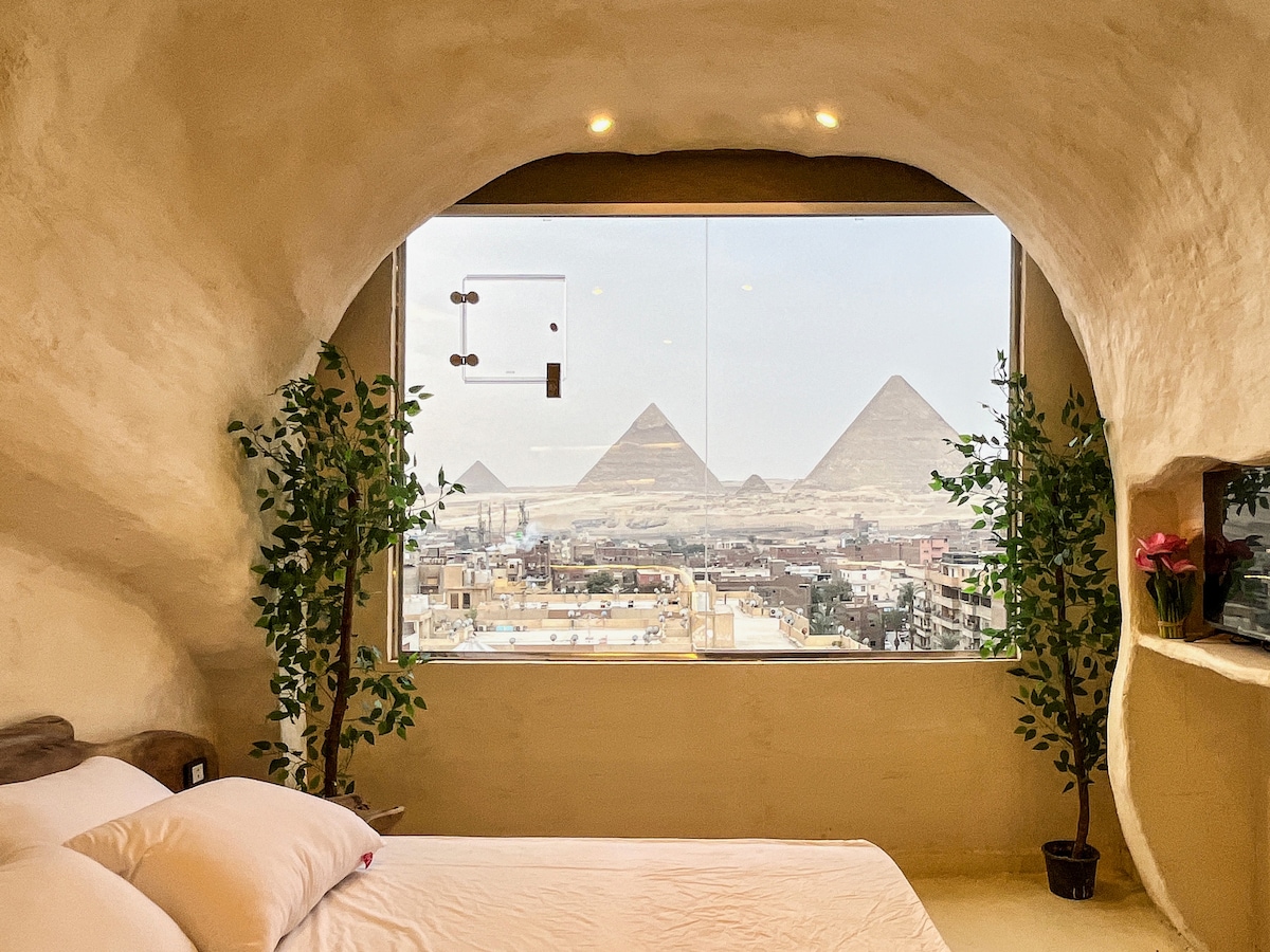 Dizajnersko zatočišče, kjer se starodavna duša sreča s sodobnim razkošjem. Ročno izklesana jama ponuja meditativno vzdušje z enim legendarnim poudarkom: velikimi piramidami. Sprostite se v masažni kadi in opazujte sončni zahod nad zadnjim preostalim čudom antičnega sveta. ✨