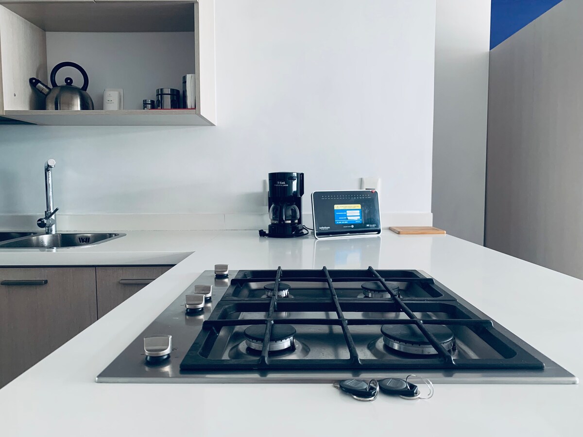 Unwind on the balcony and watch the magical sunsets of Mexico City. Fire up your laptop and get some work done while getting amazing views through the floor-to-ceiling windows. Relax on the couch while watching your favorite Netflix show on the 50-inch TV. Do some laps at the semi-olympic pool or work out at the fully-fledged gym. The apartment is full of light and warmth. The blinds and the external canopies will shade you when needed.