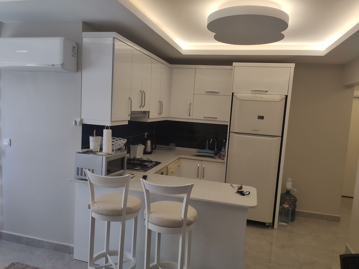 Lovely Beachfront 1 +1 Apt. Lexus Residence (70 m2) Nova oprema, dostop do plaže in pogled na morje. Celotne sezonske dejavnosti z velikim balkonom, kjer lahko uživate v jutranji kavi in obrokih Samostojni vstop v pametni ključ 7 km do centra in 35 km do Gazipase Glede na sezono velik notranji in zunanji bazen, fitnes, vodni tobogan, teniško igrišče, igralnica, kino salon, otroška igralnica. Soba za zabave, prostor za žar in varnost 7/24 (turška kopalnica, savna odprta ob vikendih) Najbolj uživajo pari in družine.