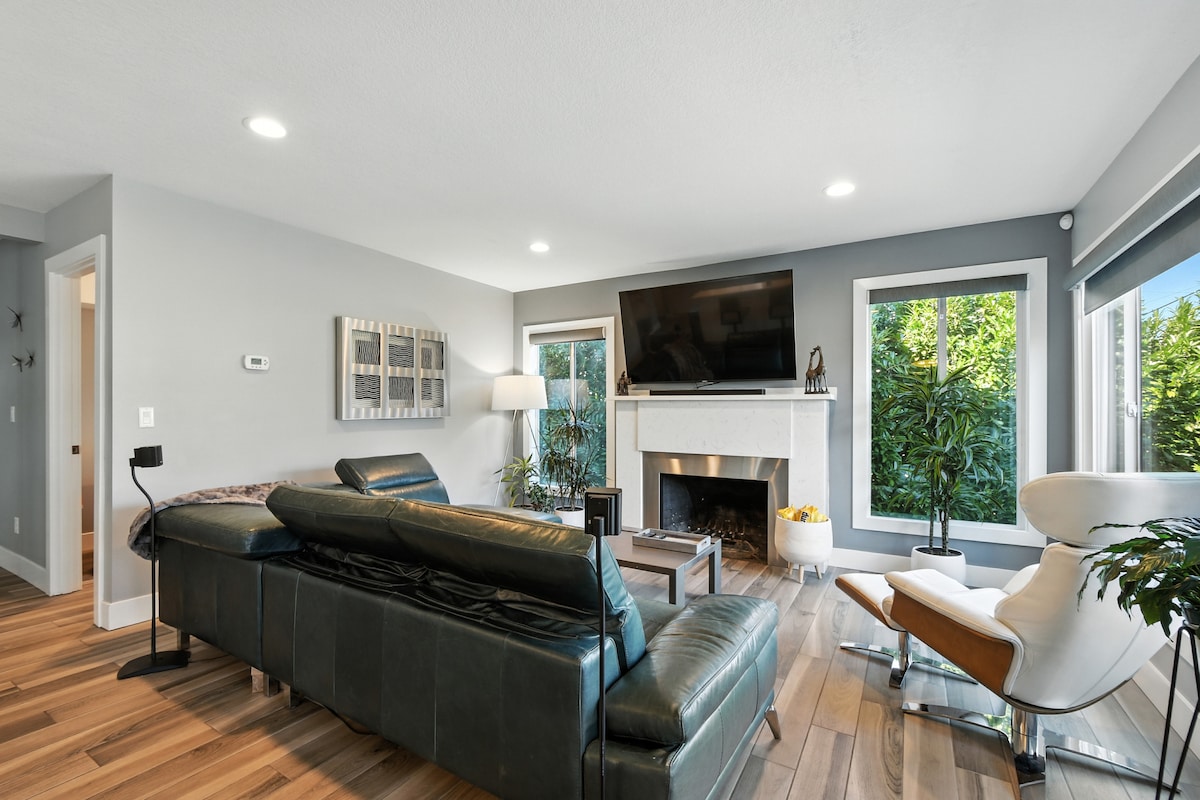 Featured in The Destination Channel’s TV show “Staycation- Sports Edition” in the fall of 2025 and found on YouTube. Contemporary-style music-themed home. Jam out with instruments, classic albums and record player by the pool table. Stunning gourmet kitchen. Big lawn and deck with teak dining table and bbq. Hot tub plus gas and real fire pits. Garage is packed! Ping pong table, pinball, foosball, Pop-a-Shot basketball, Treadmill, Peloton bike, dumbbells, and four mountain bikes+helmets.