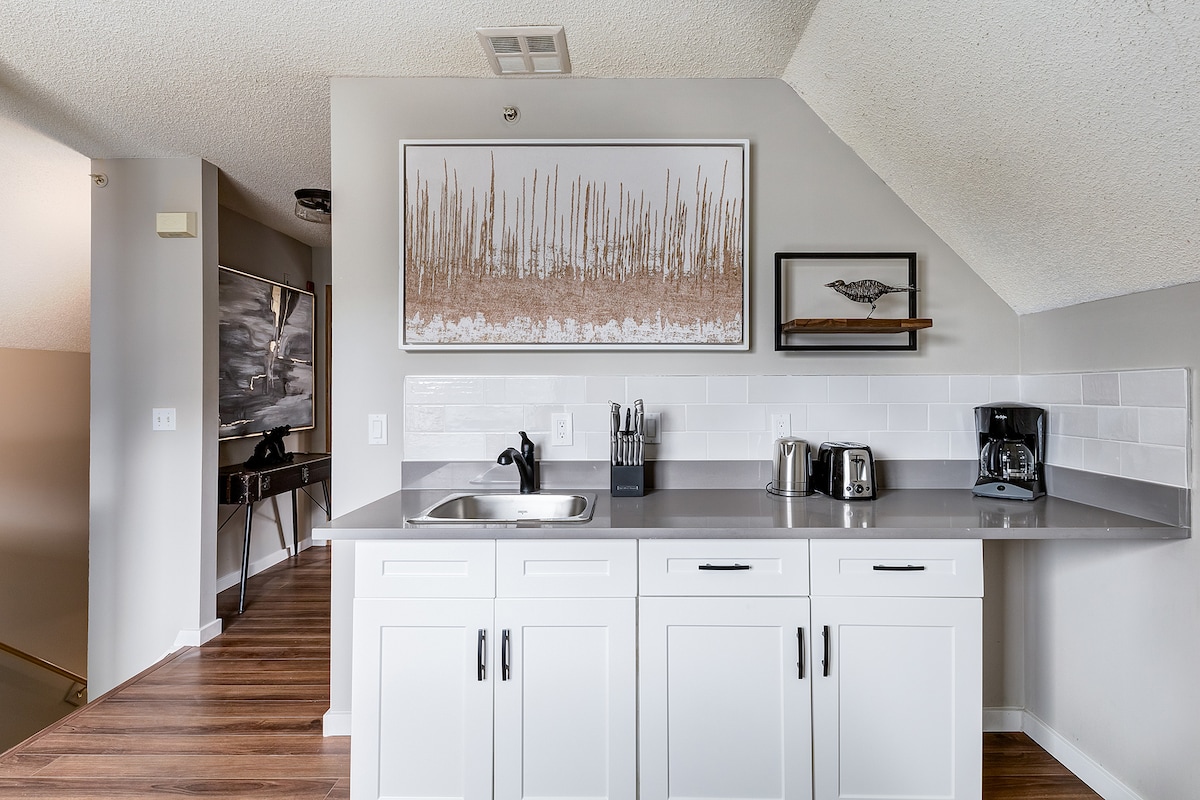 Novo prenovljeno enosobno stanovanje s pogledom na čudovito skalnato goro z balkona, spalnice in dnevne sobe vam ponuja vso opremo, ki bi jo pričakovali. V spalnici je udobna zakonska postelja. V dnevni sobi je visokokakovosten raztegljiv kavč za dodatne goste. Kamin zagotavlja prijeten ambient. Brezplačen Wi-Fi in pametna televizija z Amazon Prime Video in Shaw TV za vaš prosti čas. Popolnoma opremljena kuhinja in globoka kopalna kad s prho se lahko počutite kot doma.