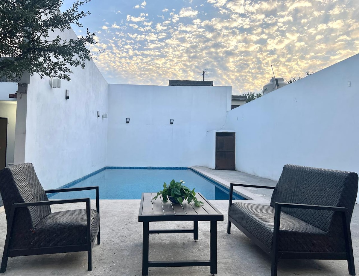 Facturamos. Pobegnite v topel, sodoben in na novo prenovljen butični dom. 19 minut od letališča in 35 minut od središča Monterreyja, zasebno z nadzorom 24 ur na dan, 7 dni v tednu, blizu industrijskih parkov in trgovin. Uživajte v butičnih kopalnicah, klimatiziranih spalnicah in ogrevanju, 75-palčnih mini LED zaslonih z Bang & Olufsen zvokom v sobi in spalnici. Aplikacije za pretakanje, Xbox, družabne igre in terasa s televizorjem, žarom in zunanjim pohištvom. Pohištvo s kamnom Saint Laurent. Vse, kar vam omogoča, da doživite odlično doživetje