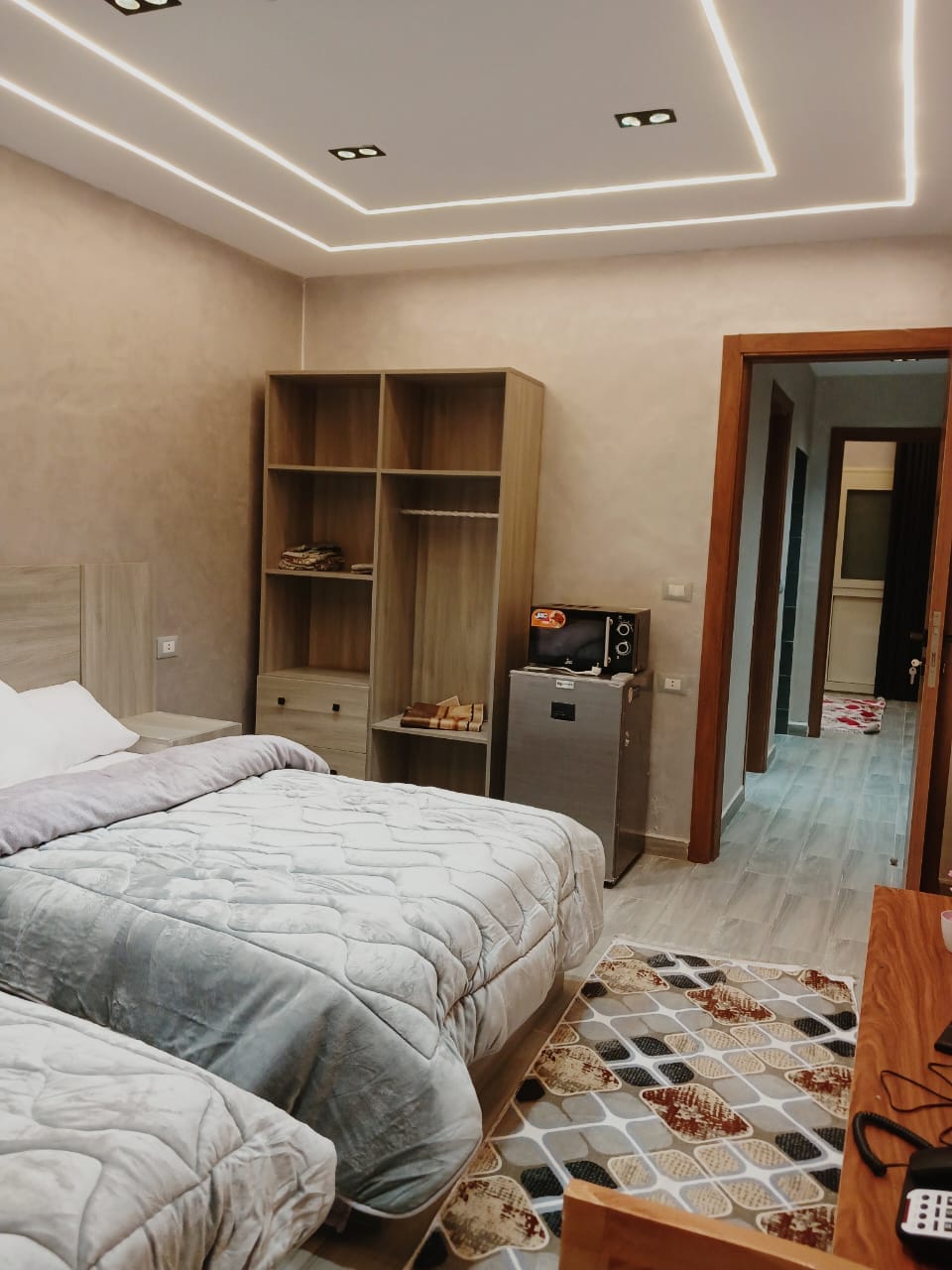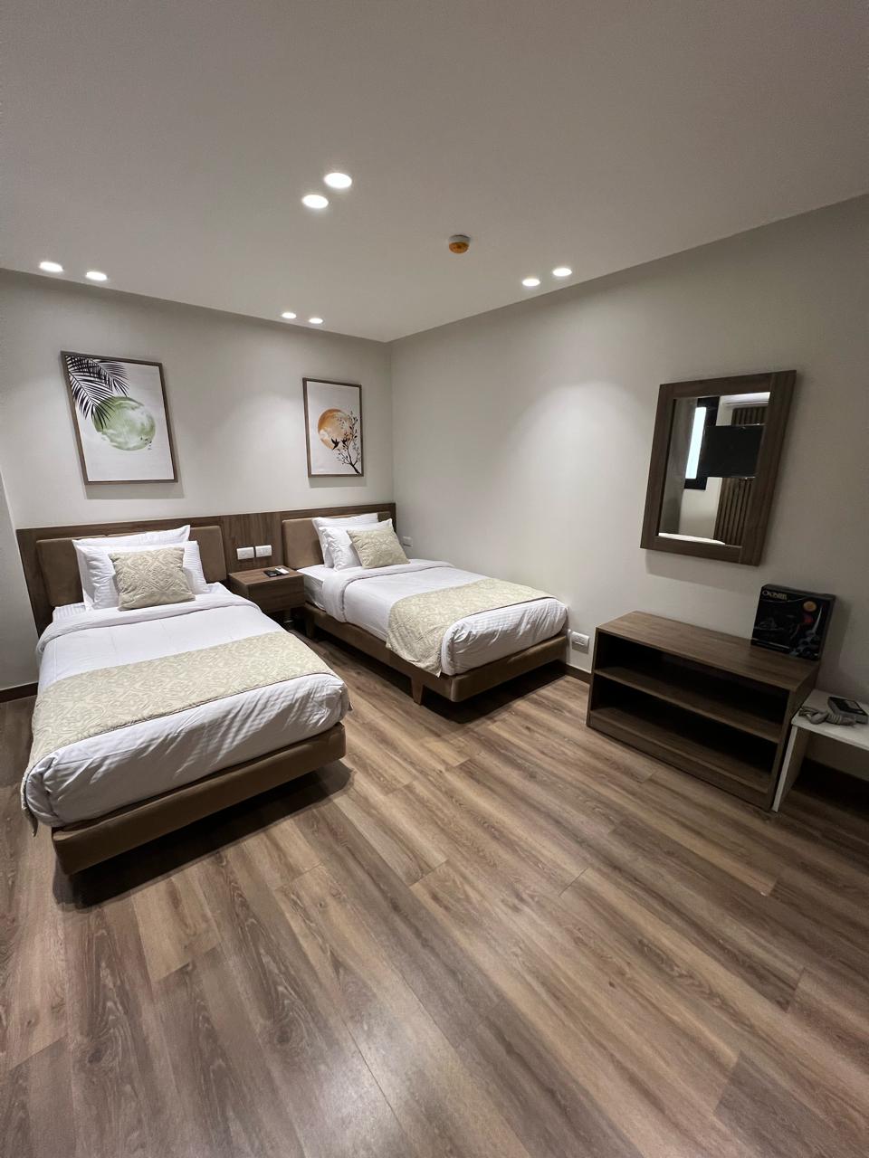 غرفة 7 غرفة فندقية ذات تشطيب عصري راقى ، الغرفة مجهزة بالكامل بكافة الخدمات ، مكون من .. سرير كبير و ادوات كهربائية و حمام و مطبخ و حراسة للفندق 24 ساعة و يوجد واي فاي و استراحة خارج الفندق لتناول الطعام و المشروبات