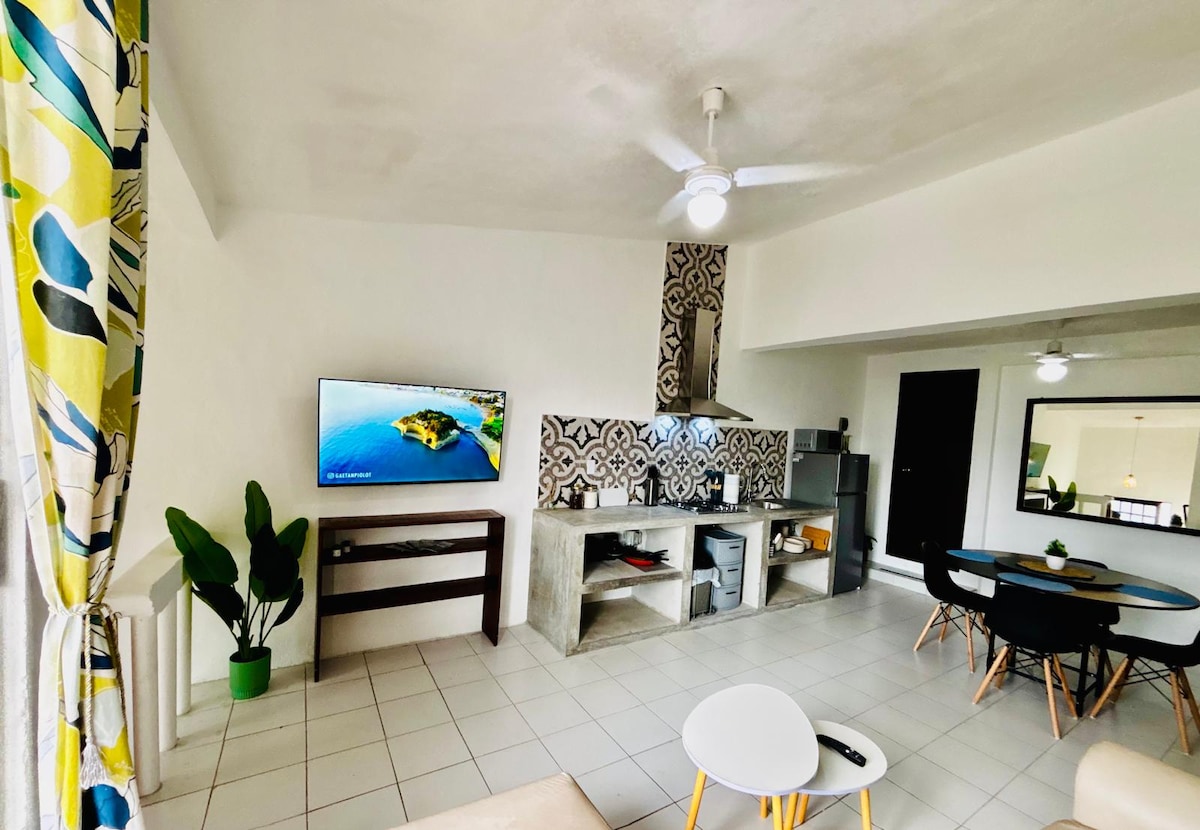 Unwind in our sun-drenched sanctuary! This cozy, sparkling clean studio in a charming Mexican neighborhood is perfect for 2-4 max guests. Relax in the comfy king-size bed, lounge on the sofa-bed, or sway in the hammock for an afternoon siesta. Catch a movie on the Smart TV after exploring. You’re just 5 minutes from the beach, downtown, and the Isla Mujeres ferry. Affordable, quiet, and full of heart—your peaceful Cancún escape starts here. Book your stay today!