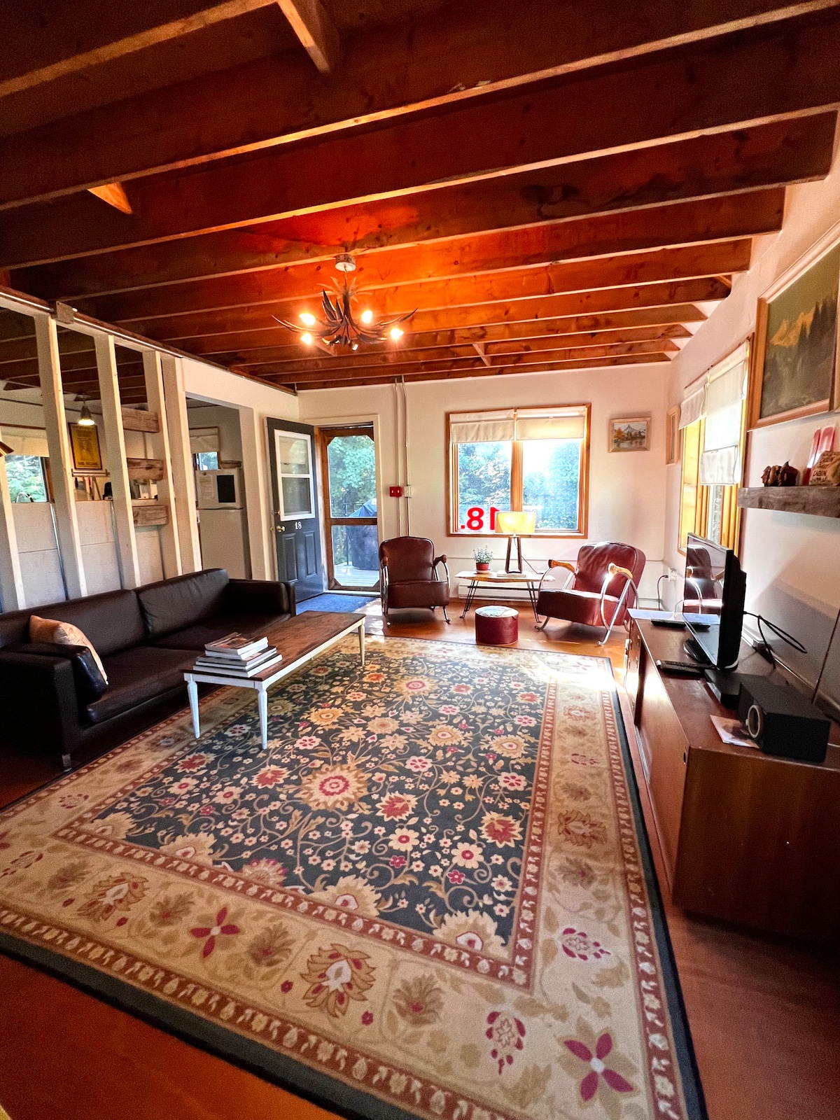 Apartma z 1 spalnico z zakonsko posteljo, kopalnico, dnevno sobo z raztegljivim kavčem in kuhinjsko nišo. Pečica Airfryer, štedilnik z dvema kuhalnima ploščama, mikrovalovna pečica, hladilnik. Nahaja se le nekaj minut od vzhodnih vrat parka Algonquin. Čeprav neposredno na vodi, je lep zahodni pogled na jezero Galeairy. Na voljo je Wi-Fi, žar s stranskim gorilnikom za kuhanje na prostem in ognjišče. Trgovina z živili in LCBO sta v bližini. Uživajte v parku Algonquin z brezplačno vstopnico Ontario Parks Pass, ki vam je na voljo med bivanjem