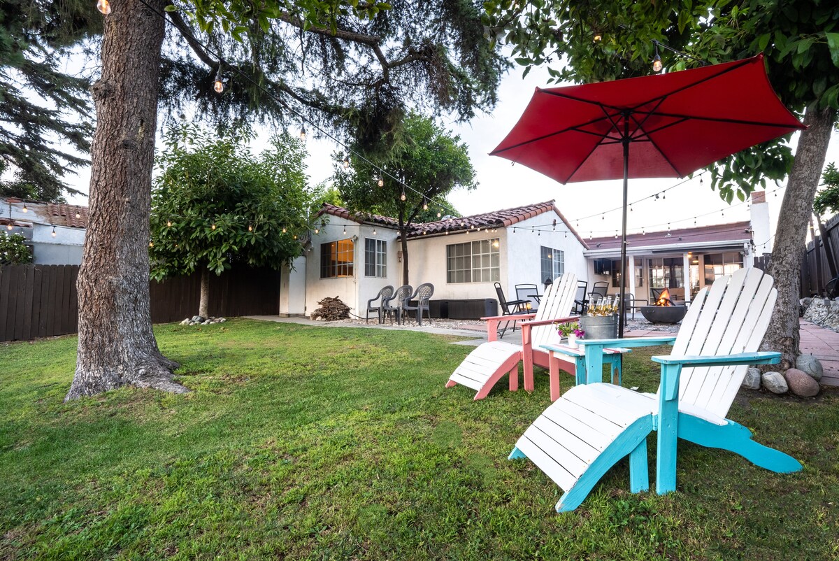To obnovljeno sodobno špansko prenočišče se nahaja v središču mesta v bližini DTLA! Popoln kraj za vas in vašo družino, ki mu lahko rečete dom, medtem ko ste v So Cal. Uživajte v razkošni opremi, kot so kraljevske postelje, masažna kad/spa s slano vodo, bivalni prostor za ognjišče, dvorišče, igre, popolnoma opremljena kuhinja in še veliko več. 8 milj od stadiona Dodger 10 milj od kriptovalutske arene 14 milj od Universal Studios Hollywood 23 milj od kmetije Knott 's Berry 25 milj od stadiona Sofi 26 milj od Disneylanda 27 milj od letališča LAX