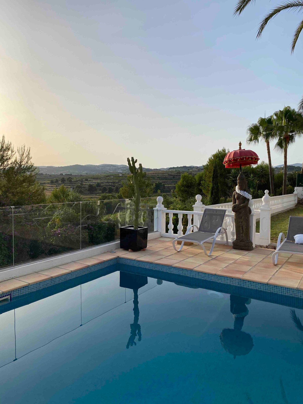 Mirna sredozemska hiša z osupljivimi razgledi, ogrevanim bazenom, 9 minut hoje do čudovitega starega mestnega jedra Altea. 15 minut hoje do morja. 1. nadstropje je zasebno za goste, z jedilnico, 3 spalnicami in dvema kopalnicama. Velika zasebna terasa, zunanje leseno pohištvo, plinski žar, vrt s čudovitim borovcem in širokim razgledom. Ogrevan bazen z ločeno teraso, samo za goste in lastnika za zasebno uporabo, ki je primeren za gosta. Lastniki živijo v zgornjem nadstropju z drugimi terasami.